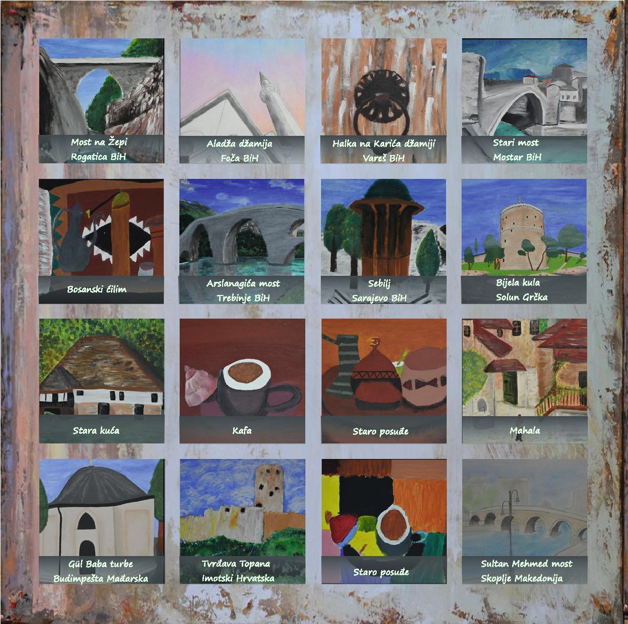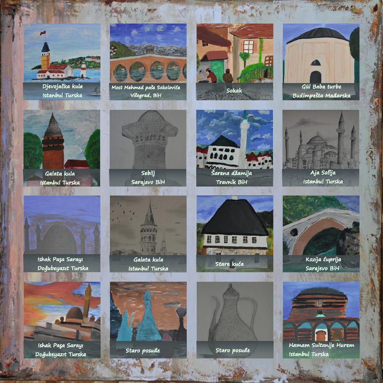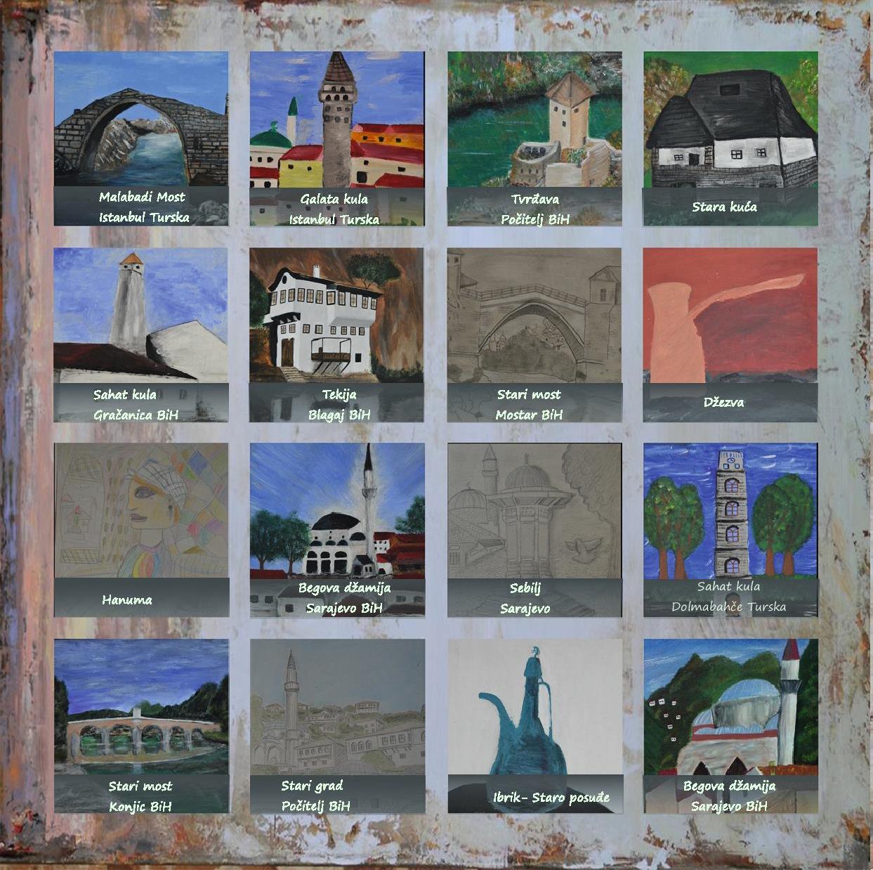 Söz konusu sergide 6-15 yaş arasındaki küçük sanatçılarımız 15 Türk ve 15 Bosna Hersek mimari eseri ve kültürel varlıklarımızı,taş ve karton maketler ile resimleri, pastel boyalar, karakalem çalışmaları ve kilim ile resmetmeye çalışmışlardır.